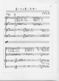 | 2年の担任は『笹やん』こと笹岡先生。受け持って頂いた担任の中ではクラブ活動に対して最も理解があり、活動そのものに対して教育的指導を受けたことはありませんでした。 さて、2年次のエポックメーキングはなんといっても合唱コンクールでしょう。 25年以上を経た今になって思いますが、はっきり言って『無謀』でしたね。組長の永井が『自由曲は自作でいこう』と言い出したときは。若気の至りか、やる気満々の笛吹ねこでしたが、永井から曲をつけるための詩を渡されたのが夏期補習の頃。 しかし、作曲は遅々として進まず、夏休みの最後の登校日にようやく原型ができました。 しかし、、どうしてもフレーズがつながらないところがあり、『永井にここに一行なんとか入らんか?』 と詩を追加させる暴挙(?)もやりました。 こうして、混声四部合唱『星 その愛と自由』(作詞:永井高志、作曲:稲場 徹) が完成されました。 さて、10月の本番、豪華(?)メンバーは 指揮 永井 ピアノ 浜崎 ヴァイオリン 小倉 フルート 稲場 残念ながら当時の録音が残っていません。当時の雰囲気に近づけるべく、コンピューターミュージックで再現を試みました。 |